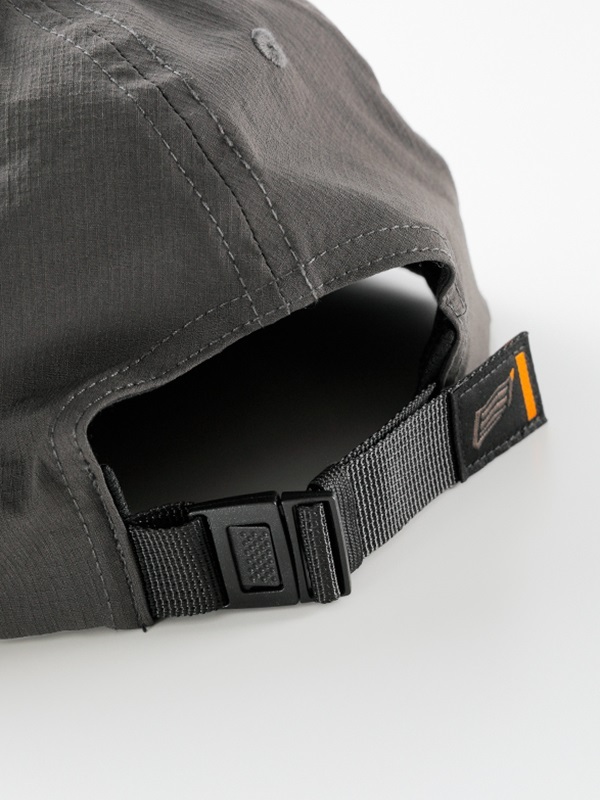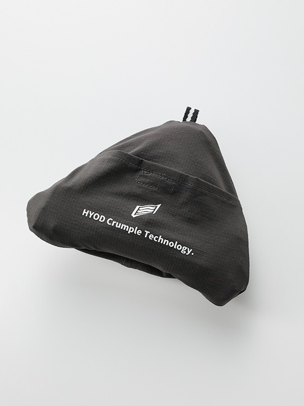 | 在前方面板上以簡單設計,加入刺繡的徽章標誌。帽子的材質採用薄而輕且具彈性的防撕裂布料,提供柔軟的佩戴感受。 | 帽子為單一尺寸,但有可調節的帶子,因此可適合不同頭圍的人佩戴。該帶子可拆卸使用。 | 帽子的本體可以收納在內側的口袋中,收納後約為邊長 15 公分的三角形,方便隨身攜帶。使用時,輕輕拉伸帽沿並整理形狀後佩戴。 |