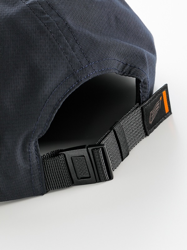| 在帽子的正面大面積刺繡了徽章。面料採用輕便且具有彈性的防撕裂材質,佩戴感輕盈舒適。 | 雖為單一尺寸,但配有可調節的背帶,適合多種頭圍使用。背帶可以拆卸,方便調整與清洗。 | 帽子可折疊並收納在帽子內側的小口袋中,收納後形成邊長約15公分的三角形,攜帶方便。使用時請輕輕拉直帽沿並調整形狀後佩戴。 |