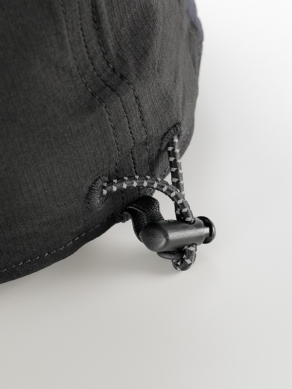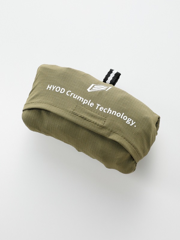 | 前面板印有HYOD PRODUCTS的大型字樣。採用輕便且具有彈性的防撕裂面料,提供柔軟的佩戴感。 | 雖然是單一尺寸,但配有調節用的後扣,能根據頭圍與頭型進行舒適度調整。 | 可以將帽體收納到前面板的內側口袋中,收納後約為8cm x 11cm,是摩托帽款中最為便攜的小巧款式。 |