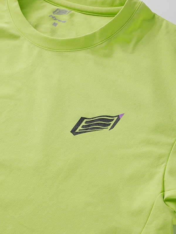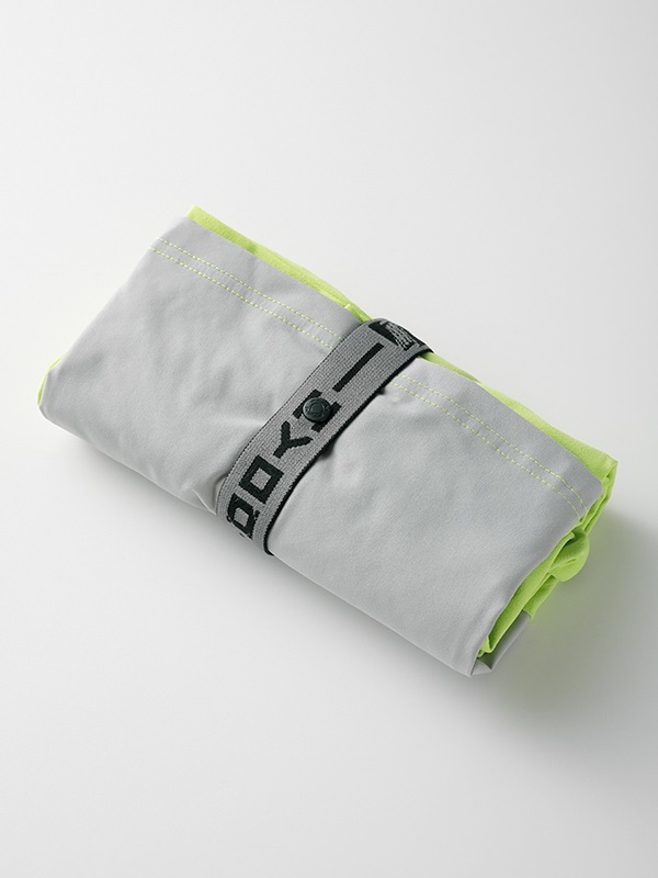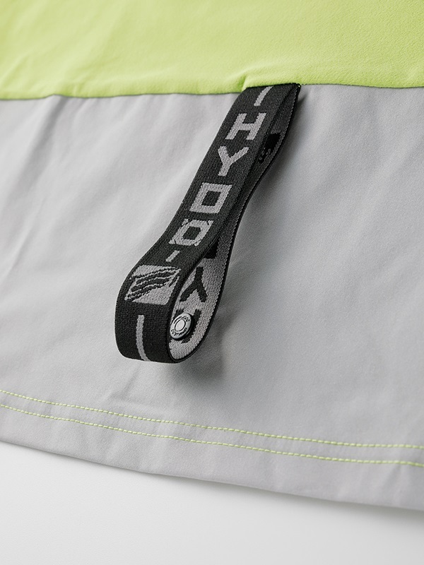 | 左胸配置有印刷的徽章標誌。 採用具彈性的高機能面料,觸感柔軟如棉質,兼具吸水性與防透特性,並具備最高等級的防紫外線指標 UPF 50+。 | 腰部配有具伸縮性的織帶腰帶,織有 HYOD 標誌的提花圖樣。 該腰帶在將衣物收納時可用來固定,但穿著時可透過塑膠釦固定,不會造成干擾。 | 本款為可收納式(Packable)設計,可將本體捲起並用腰部提花織帶固定成小巧尺寸,方便攜帶。 可輕鬆放入包中,無論是運動後或流汗時,皆能隨時取出更換,非常實用。 |