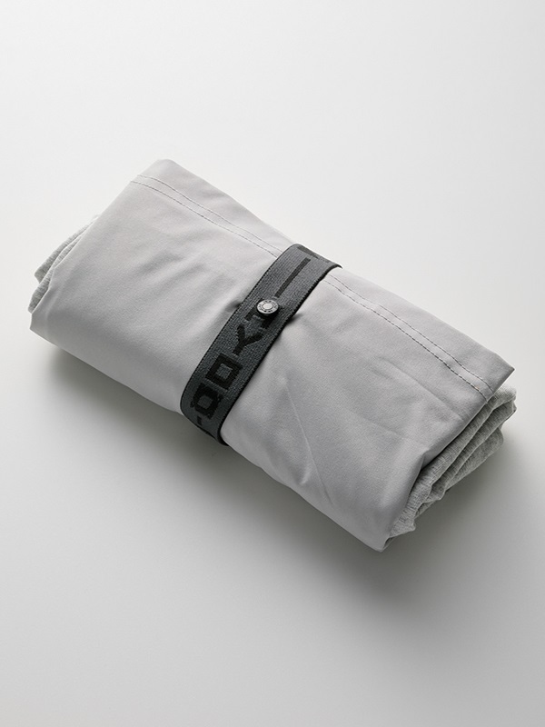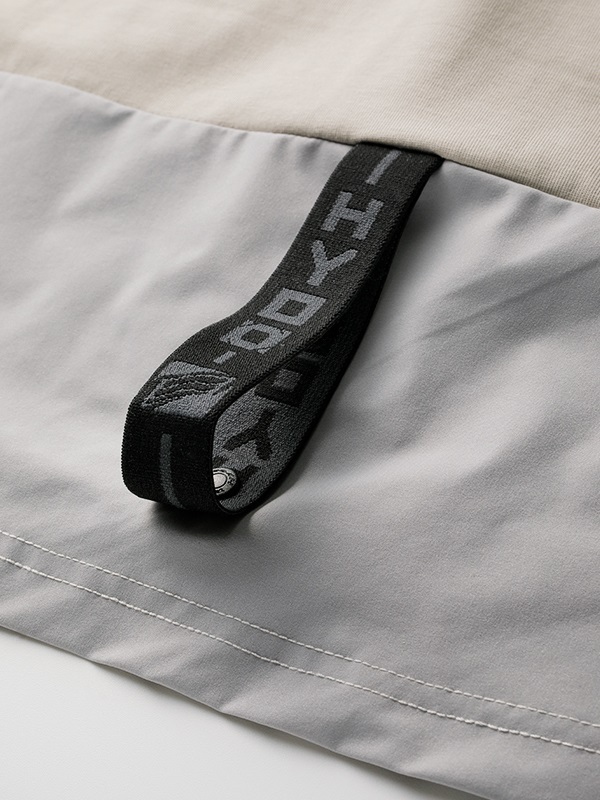 | 左胸印有徽章圖樣,採用不易起皺、厚實且具霧面質感的吸汗速乾材質。 | 腰部配有具伸縮性的提花織帶,上織有 HYOD 標誌。此腰帶可在收納時用來固定衣物,穿著時則可利用塑膠釦固定,不會造成干擾。 | 本款為可收納式(Packable)設計,可將衣物捲起後以腰部提花織帶固定成小巧尺寸,便於攜帶。放入包中隨身備用,流汗或氣候變化時皆能方便取出更換。 |