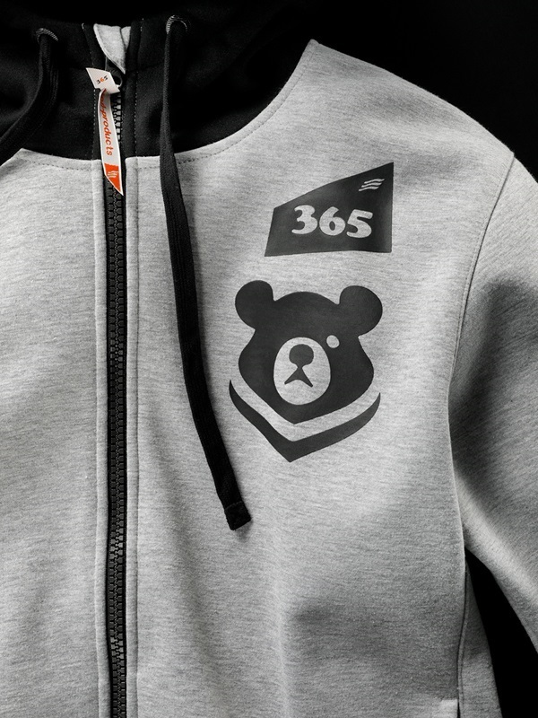 | 外層採用棉質運動布料,內貼防風薄膜,同時兼具防風與保暖性能。 | 左胸印有 365 BEAR 圖樣與 HYOD365 標誌,不論在騎乘時或日常穿搭中,都能作為亮點元素, 展現休閒又具個性風格的造型。 | 袖口與下擺配置高彈性羅紋針織設計,有效阻擋冷氣侵入。內裡使用柔軟且觸感極佳的長絨材質,兼具卓越的保暖性與活動性,讓你在冬季騎乘時也能保持舒適自在。 |