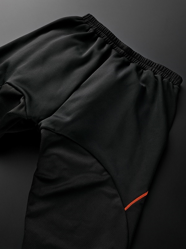 | 這款內裡採用具蜂巢圖案的特色表面材質,並在中間夾層加入防風薄膜,內層為觸感柔軟且保暖的微絨毛布。三層防風設計有效阻隔冷風,展現出優異的保暖性能。 | 各部位縫製採用平縫技術,使布料在縫合處保持平整,接縫更平滑。即使多層穿搭,亦能減少因縫線突起所帶來的粗糙感或不適,提供更加舒適的穿著體驗,特別適合長時間騎行需求。 | 臀部採用彈性針織布,增強延展性,即使在騎乘姿勢下也不感到緊繃或不適。此材質為刷毛設計,觸感柔軟,兼具保暖效果。無論是多層穿搭或騎行動作,都能靈活應對,提供舒適自在的騎乘體驗。 |