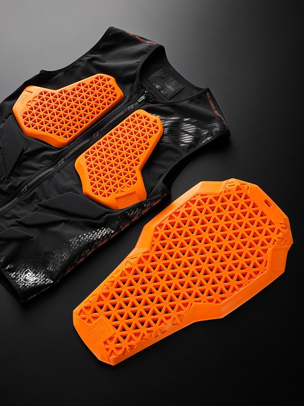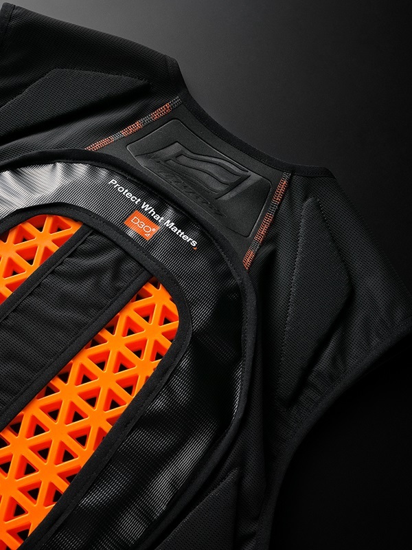 | 背心本體採用了適合任何季節穿著的透氣網布。胸部裝備了分離式的D3O® CP1 L1護具。 | 背部裝備了D3O® BP4 L1護具(皆為CE規格1級)。 | 適應各種情境的HYOD高功能服裝組合 |
