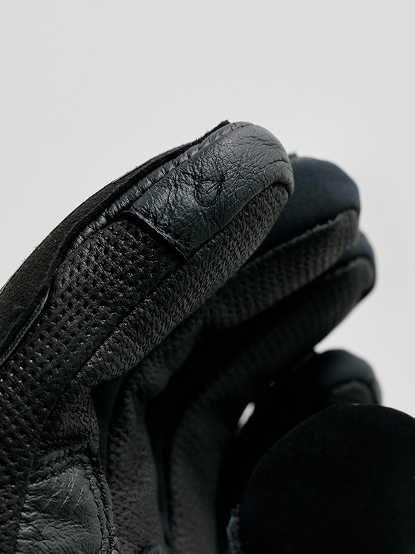 | 手掌材質採用輕便耐用的山羊皮,拇指部分則使用具優秀貼合感的三層彈性材質。經過壓花處理後,具備優良的防滑性能和高抓握力,對於冬季手套來說令人難以置信。 | 採用了HYOD賽道手套的專業技術,將其進化為適合街道使用的設計。手指部分配備了不妨礙指頭彎曲的浮動式皮革補片。 | 雙手食指的尖端採用了觸控屏幕皮革,即使戴著手套也能方便地操作智能手機。 |