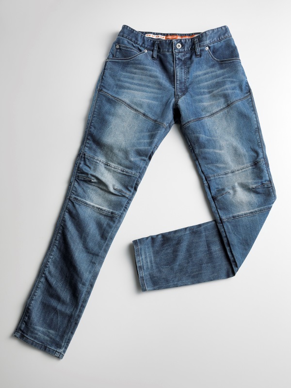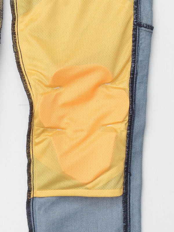 | 使用了吸汗速乾性優異、始終保持乾爽舒適穿著感覺的Coolmax材質彈性牛仔布。剪裁上採用褲腳逐漸收緊的騎行者型態設計。 | 內裡前側與皮膚接觸的部分裝有吸水性和速乾性優異的聚酯纖維網眼內襯,即使在夏季騎行時也能減少褲內因汗水造成的黏膩感。建議在夏季搭配具有吸汗速乾功能的滑褲,以提供更舒適的穿著體驗。 | 膝部標準配備了衝擊吸收力和佩戴感優秀的D3O®護具(可拆卸)。護具可以根據體型進行上下兩段階的調整。由於護具柔軟且靈活,帶來了穿著舒適性、設計美感及剪裁等多方面的優點。 |