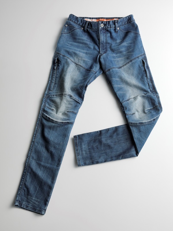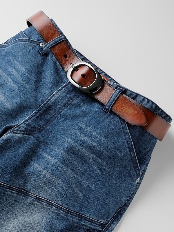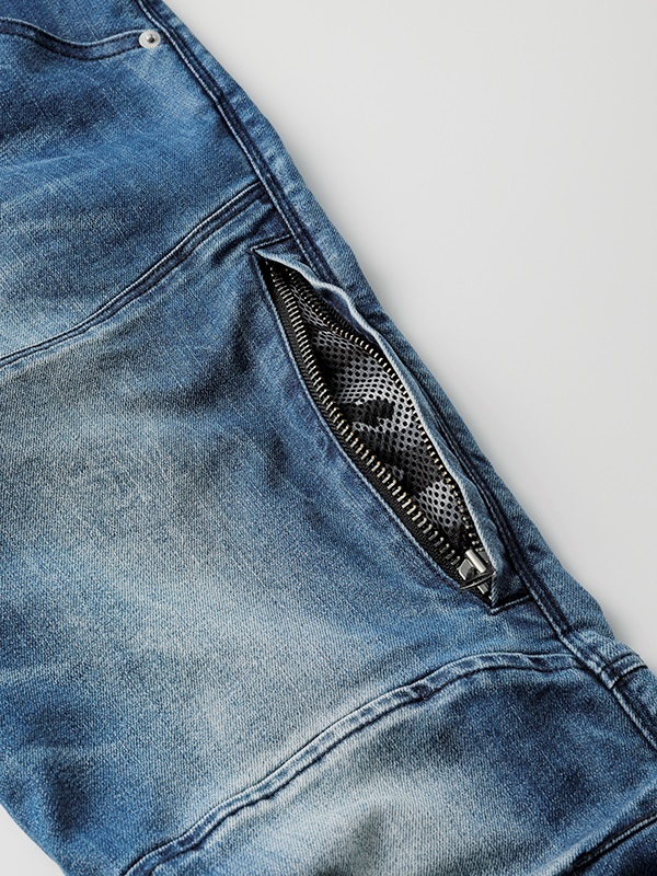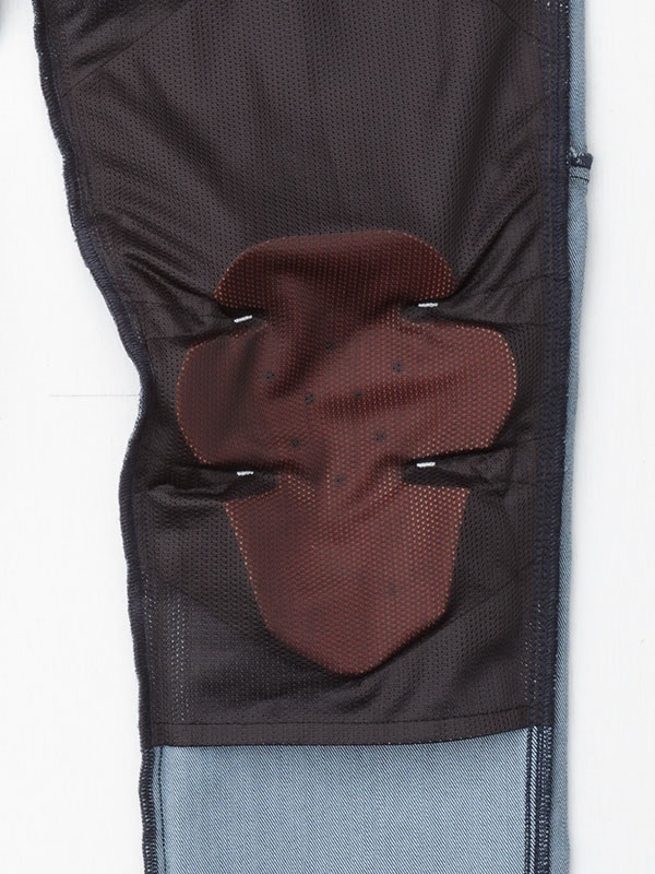 | 內裡(網眼內襯)設有安裝護具的結構。膝部設有固定護具位置的縫線,可利用這些縫線將膝部護具的位置進行兩段階調整。標準裝配的膝部護具位於下方。 | 大腿部位裝有通風拉鍊,以便引入行駛風。根據外部氣溫可調節拉鍊的開關,導入新鮮空氣,提升夏季騎行的舒適度。 | HYOD運動牛仔褲搭配多款顏色和樣式的腰帶,能夠突顯牛仔褲的特色。更換腰帶的顏色或樣式會大幅改變褲子的整體印象。請盡情享受這些經得起時間考驗的腰帶與牛仔褲的搭配。 |