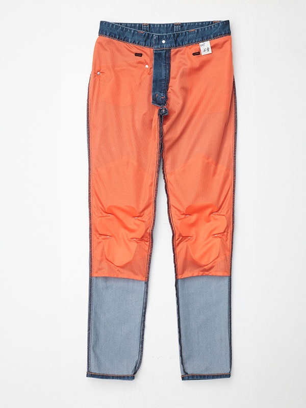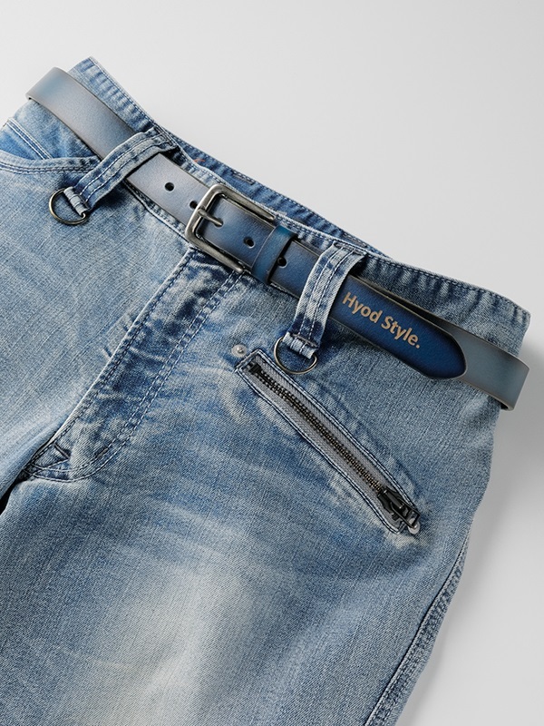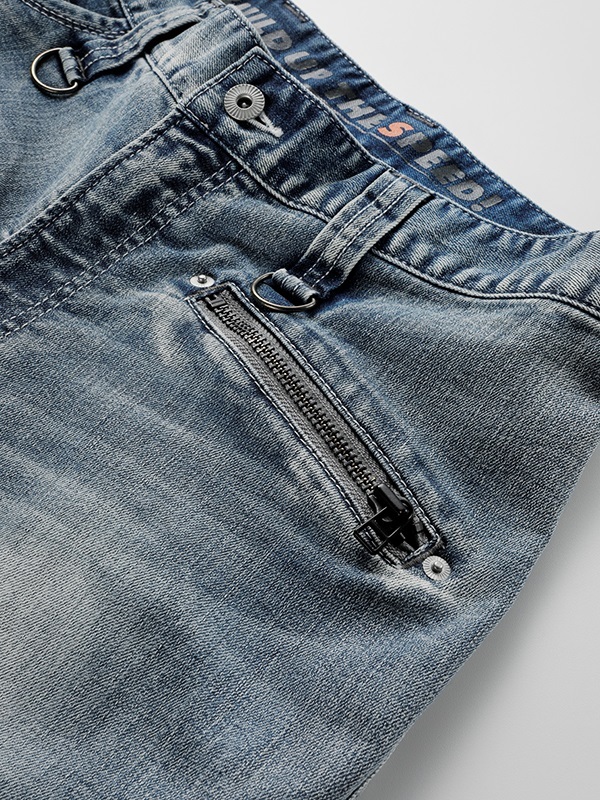 | 內裡(網眼內襯)設有安裝護具的結構。膝部設有用於固定護具位置的縫線,可以利用這些縫線將膝部護具的位置進行兩段階調整。標準裝配的膝部護具位於下方。 | 左腰前側的拉鍊口袋可以用來存放貴重品等不易膨脹的物品。為了防止車輛操作時對油箱造成傷害,拉鍊口袋僅設置在左側。 | HYOD 運動牛仔褲配有多種顏色和款式的腰帶,可以增添多樣化的風格。更換腰帶的顏色或樣式,可以大幅改變褲子的整體印象。請盡情享受這些經得起時間考驗的腰帶與牛仔褲的搭配。 |