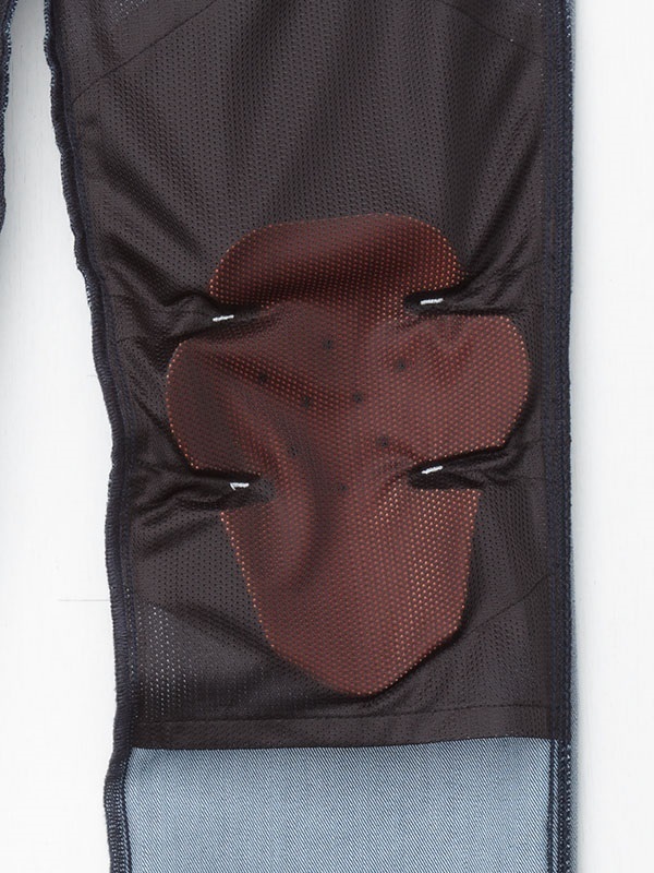 | 內襯(網眼內襯)可裝上保護器的結構。在膝部設有固定保護器位置的縫線,可以利用這些縫線進行兩段階段的調整。標配的膝部保護器安裝在下側。 | 最注重的是符合體型動作的版型設計。針對騎車時的腰部貼合感、股部開合容易度等運動性能,及膝部的彎曲靈活性,尺寸感與一般牛仔褲相比,長度(內襯長度)較長,這是顯著特點。 | HYOD運動牛仔褲的色彩選擇豐富的腰帶系列,改變腰帶的顏色或風格,可以大幅改變下身的印象。希望您能享受腰帶與褲子的搭配,並長時間體驗其變化。 |