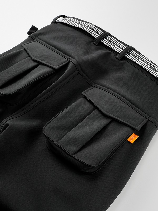 | 這條褲子附有腰圍調整帶。您可以通過扣環部調整帶子的長度,並且帶子本身也可以拆卸。扣環採用印有家徽的樹脂材料,能有效防止對摩托車造成刮傷。 | 在表布的內側,結合了防風薄膜和毛絨材質,提升了防風性和保暖性。此外,為了提高保暖效果,在直接迎風的前部裝置了具備蓄熱和保溫效果的布料,這樣的設計考量了長時間寒冬騎行的需求,讓產品具備了應對極寒天氣的規格。 | 在臀部位置,設有不會與座椅互相干擾的大小和位置,具有容量的盒型口袋。此口袋配有翻蓋設計,即使戴著手套也能輕鬆操作。 |