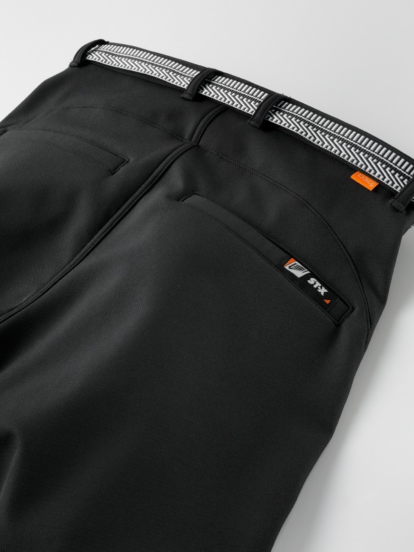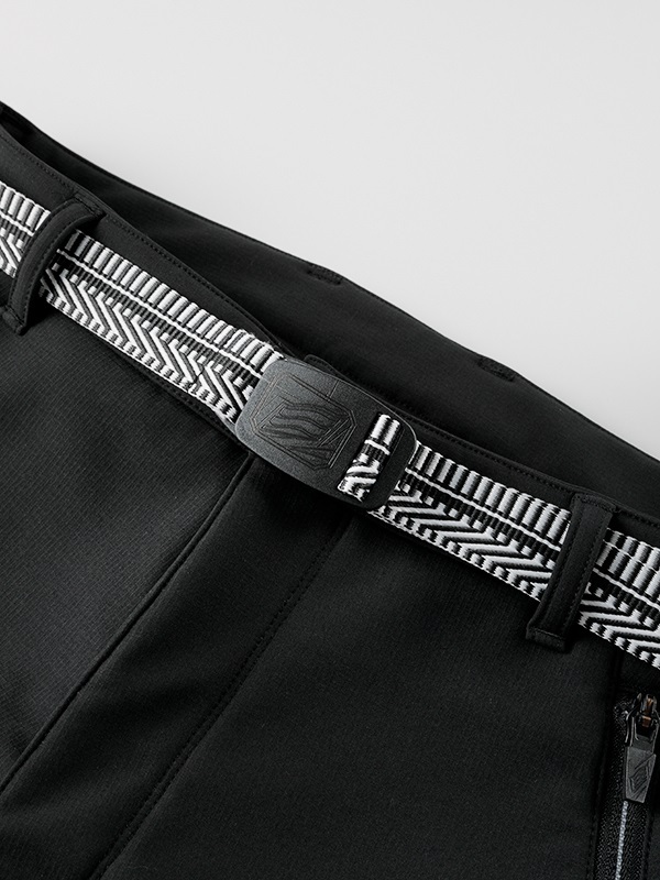 | 這條褲子附有腰圍調整帶。您可以通過扣環部調整帶子的長度,並且帶子本身也可以拆卸。扣環採用印有家徽的樹脂材料,能有效防止對摩托車造成刮傷。 | 在表布的內側,結合了防風薄膜和毛絨材質,提升了防風性和保暖性。此外,為了提高保暖效果,在直接迎風的前部裝置了具備蓄熱和保溫效果的布料,這樣的設計考量了長時間寒冬騎行的需求,讓產品具備了應對極寒天氣的規格。 | 臀部口袋採用了簡單的設計,沒有配備按鈕或拉鍊等閉合方式。其容量適中,足以容納摺疊式錢包。 |