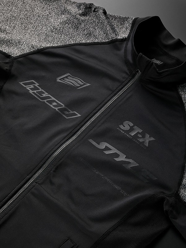 | 採用了具有防紫外線和優越吸汗速乾性的舒適伸縮材質。可有效吸收因出汗產生的水分,始終保持乾爽舒適。與外套襯裡的良好搭配性(不易勾掛且滑順)也是該材質的特性。 | 採用適中合身的尺寸設定,並擁有優越運動性的設計。這是一款可單穿,也可作為外套內層穿著的摩托車防曬衣。 | 具有彈性布料,胸前印有速度感圖案,背後印有盾徽標誌。運動感與活力設計是其特點。 |