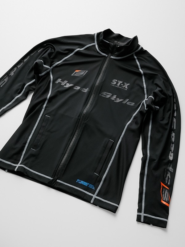 | 比一般的尼龍更優越的吸濕排汗性,具有約2倍的吸放濕能力,是一種柔韌且耐用的面料。由於優越的吸濕排汗功能,通過蒸發冷卻效應實現瞬間冷卻。由於纖維本身經過加工,冷感功能持久。 | 採用不過於緊身、適度合身的尺寸設定和優越的運動性剪裁。這是一款可單獨穿著,也可作為外套內層穿著的摩托車防曬衣。 | 具有彈性面料,胸前印有Speed ID設計的圖案,背面印有HYOD STYLE標誌。以運動和活力的設計為特點。 |