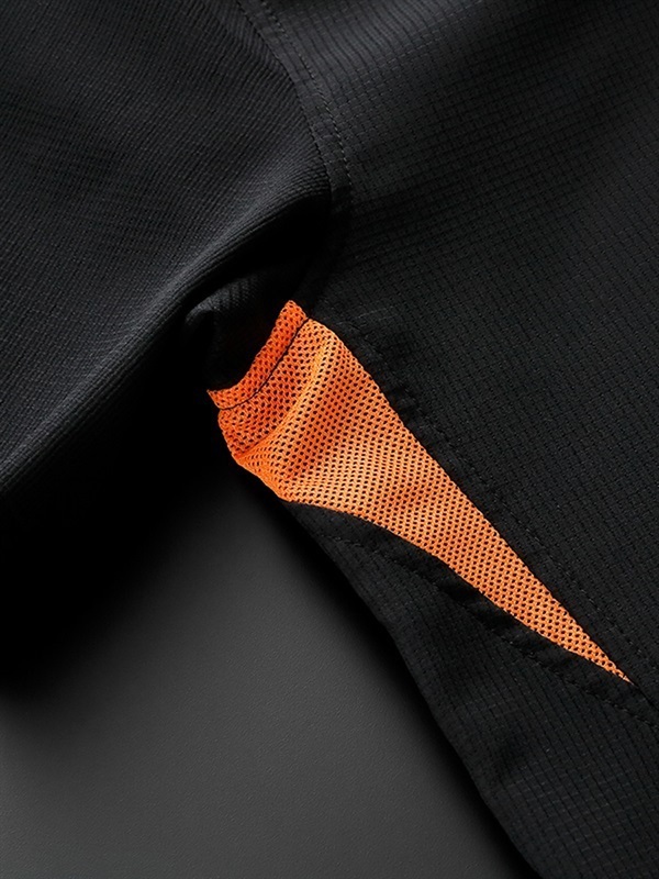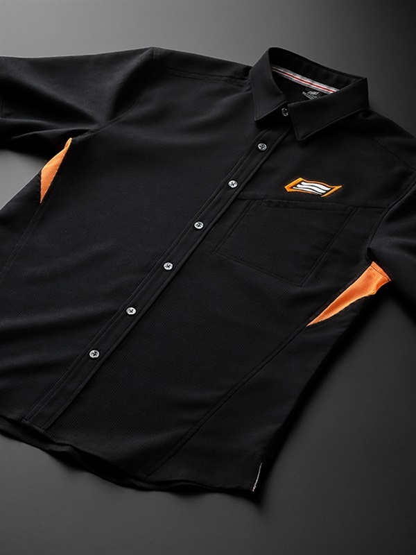 | 採用了具有點狀微細通氣孔的輕量高機能素材“Airrotec”,該材料具有優越的透氣性和彈性。 | 採用了考慮到騎乘使用的HYOD原創設計。 | 在背部和腋下的拼接部分使用了網眼材質。左胸口裝飾了徽章刺繡和口袋。 |