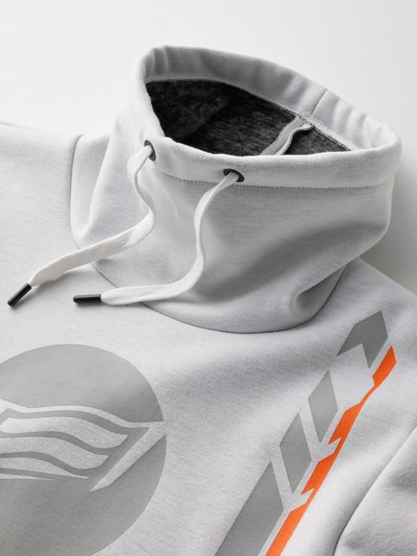 | 這是一款可完全覆蓋頸部的高領設計休閒服,特別適合在寒冷的天氣中使用。頸部的織帶可以從內側的孔中拉出到頸部,您可以根據自己的喜好進行調整,提供額外的保暖效果和舒適度,非常適合長時間騎行時使用。 | 這款商品配有HYOD及SPEED STYLE等HYOD的標誌性圖案和標誌,並融入了HYOD的代表顏色「橙色」,作為低調的點綴。這種設計不僅增添了運動感,也使整體外觀更具時尚感,能夠吸引喜愛運動風格的騎士。 | 此款採用將排汗材質與防風薄膜及觸感優良的絨毛材料進行膠合的三層設計,具備卓越的防風性、防寒性和保溫性,HYOD原創的舒適材料確保在各種天氣條件下均能保持穿著者的舒適,特別適合冬季騎行及戶外活動。 |